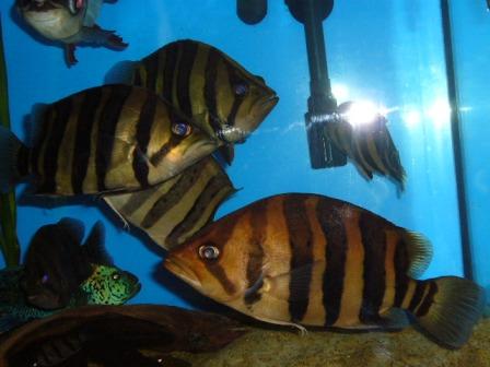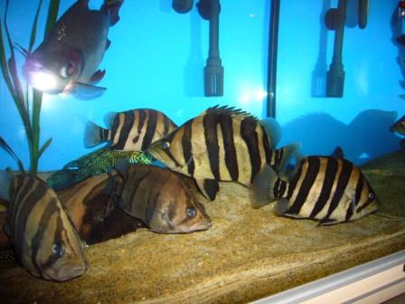 WOuld you beleive it Cane, you bought my old tiger which I off loaded to the LFS, last week. I've had him for 4.5 years, and he's been dark for 90% of its time. Only until recently he went really white after I added a load of stable tigers. Still he did not stabilise with black bars and gold base colour. Not like in yout tank. Looks fantastic.