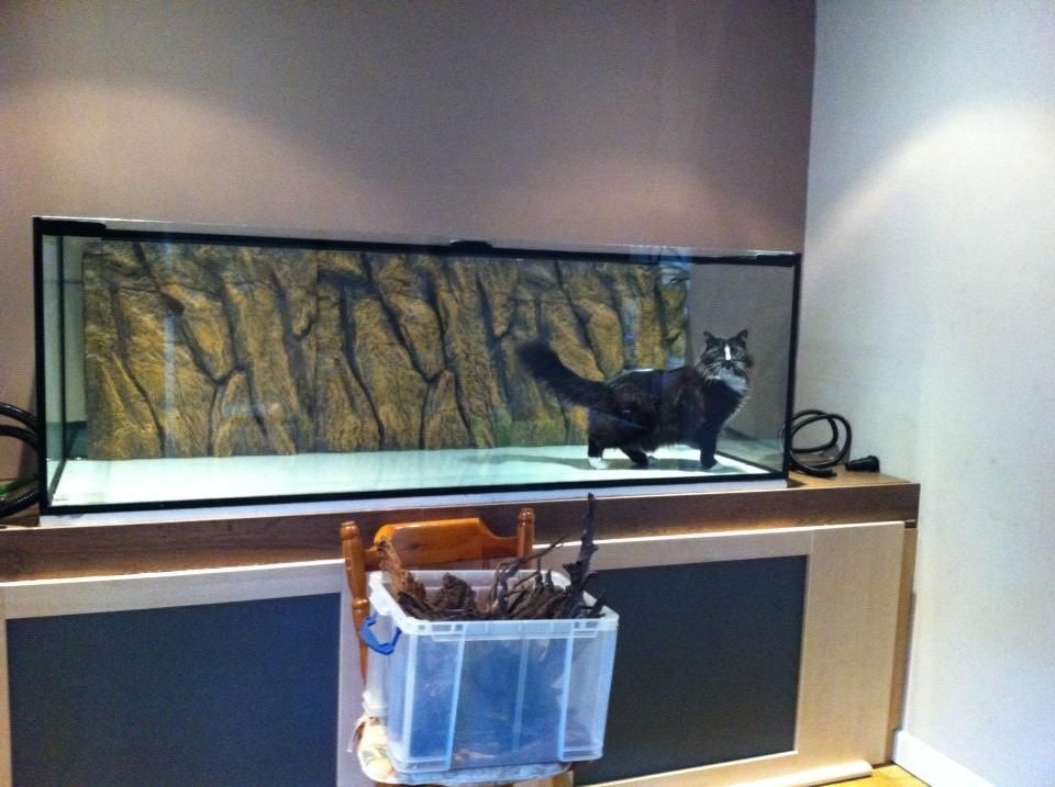 Tank with 3d background. I used exo terra backgrounds with thinned silicone coating. Full cost £32