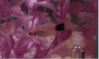 Well, I went into my LFS today to try to get a job and saw these little beauties. White Mickey Mouse platys. Me, naturally, loving platies and having no money hit my girlfriend up for 7 bucks to get some
