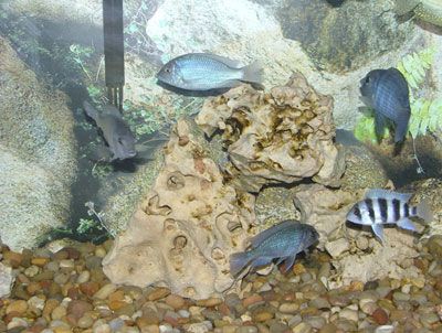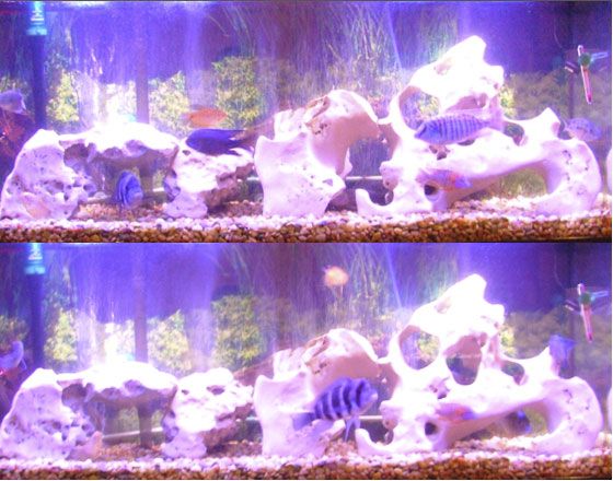 The frontosa is only about 8", and does pretty fine. Frontosa are slow moving fish who prodominantly hang out on the bottom in a cave. My frontosa comes out to eat and swims about only occassionaly. There is actualy plenty of room. I have alot of rock in there and there is still plenty of room to move. Check out the attached pictures, you will be surprised that there is so much room to move. There are also plenty of places to hide. The frontosa is about 8 " long, and so is the Tangerine Tiger; however, my tank is 16" wide(deep).
