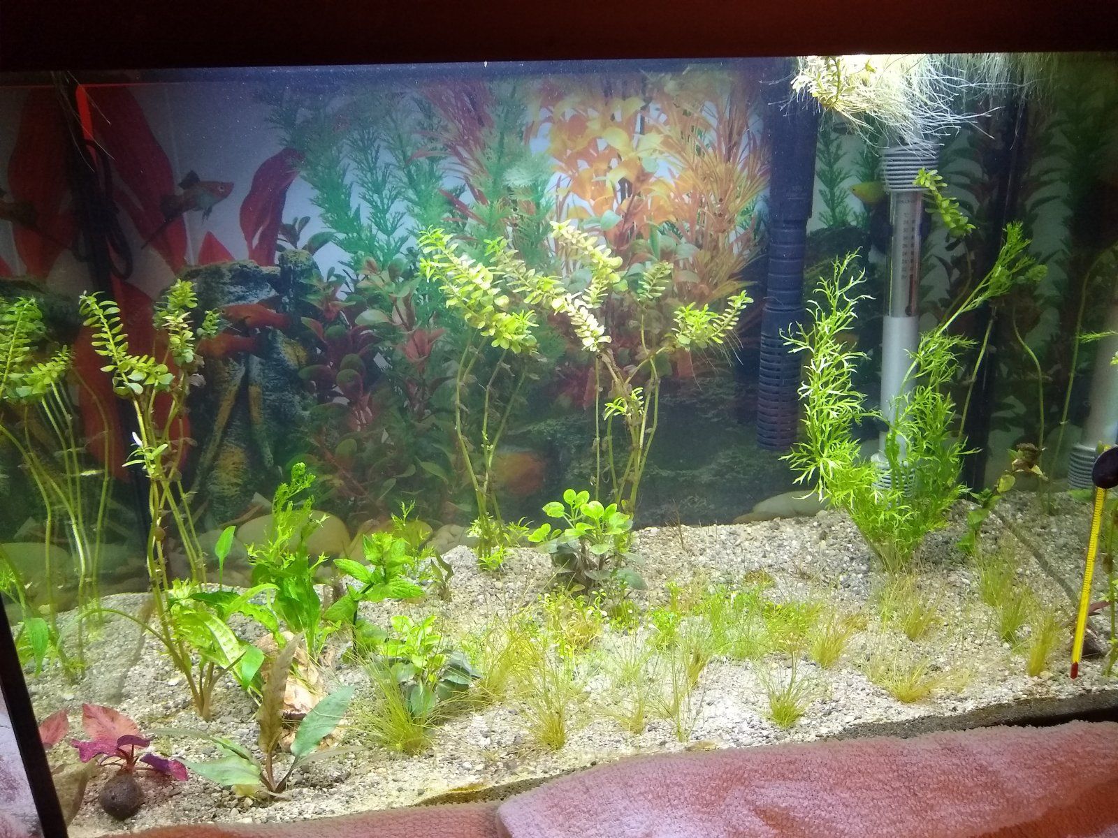 Here is a picture from the day I planted the water sprite, it has already grown since then. I forgot to mention I also added a rock to which I fuddled an attempt of tying java fern to.