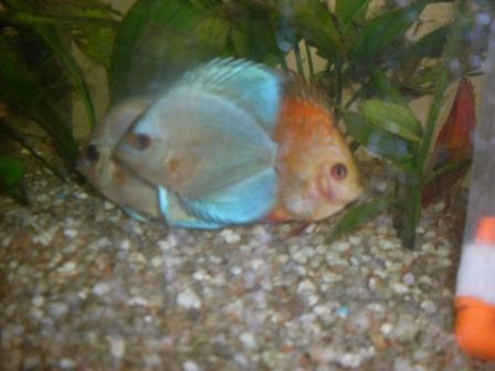 Some time back, I posted this "flirting" between my red and blue Discus going on..... Is it advisable to let it carry on, or should I just separate them.... (in view of "contaminating" a true strain as oposed to (at least) having a breeding pair) It is the pair in front. (red & blue)