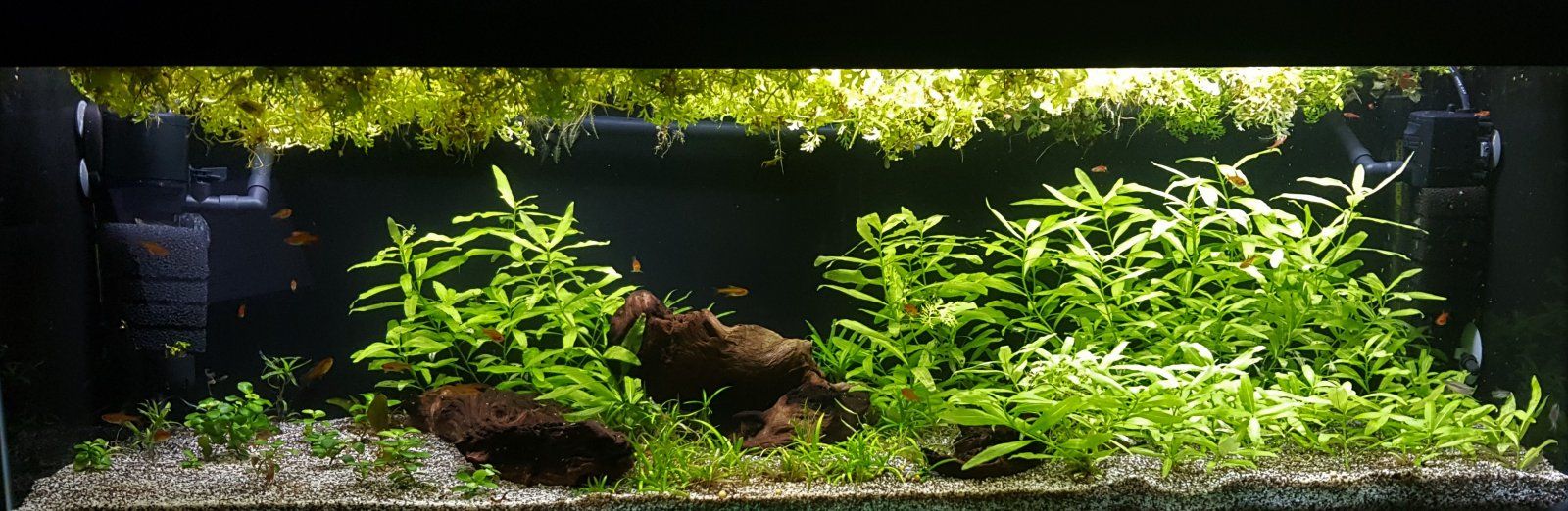 Thanks. I put flourish tabs in about a week ago. I have also switched my liquids (TNC lite) from 5ml per week to 0.5ml per day. They were in an area of no flow and were acting as a trap for dead leaves - so I have cleaned that out. Pretty sure its just the initial die off as there is plenty of new growth and the runners are rooting. I also suspect I trimmed it too early to try to encourage carpeting. So will leave it alone for a few weeks to ensure all is well established before cutting again.Wow looking really fantastic. Are you dosing any fertilisers? Just wondering if it would help the Helanthium?