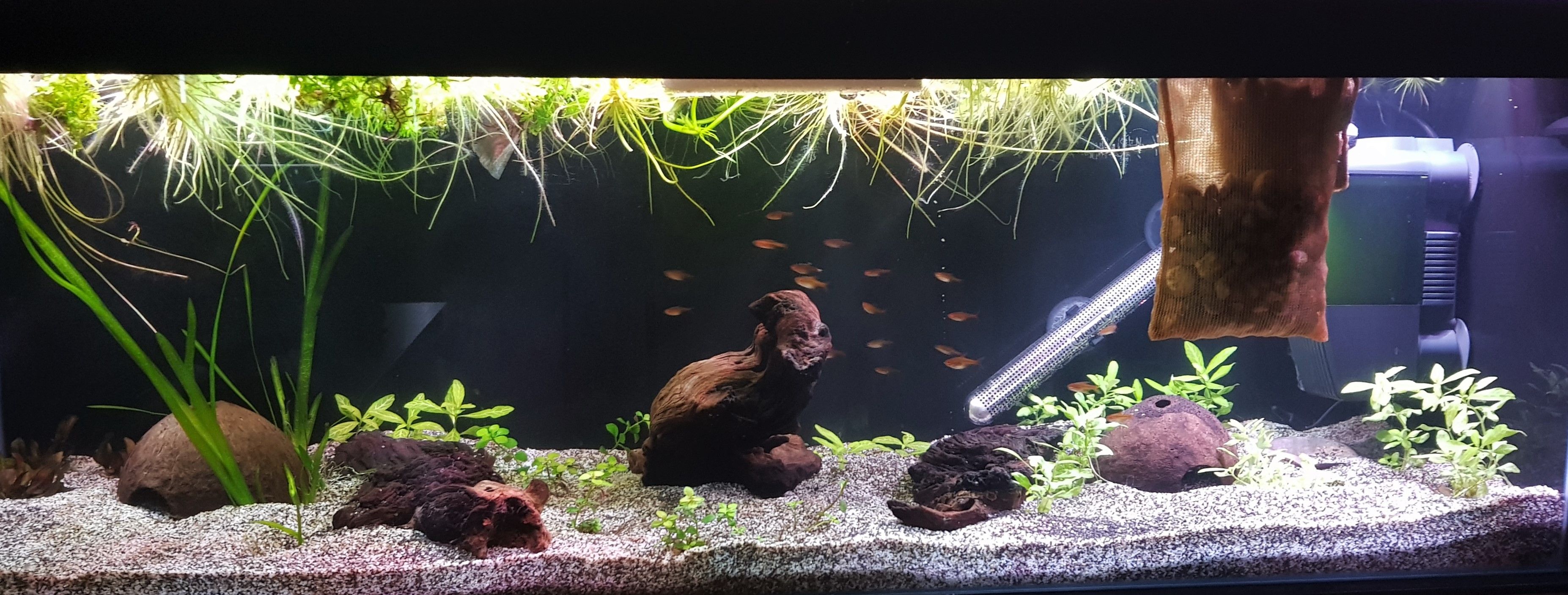 frogbit will soon get the water right. Are you planning on upping your Embers after a while or are you thinking nannostomus eques still.