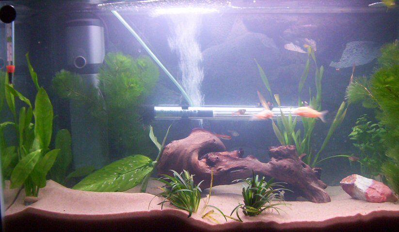 If you put it at an angle, bringing the right end down, maybe you could get the left end behind that tall plant by the filter and then angle the rest down behind the bogwood? Can't tell for sure whether there's room to do that though.nightlife20 said:yeah i thought about hiding the heater but... where!?!