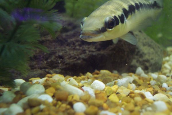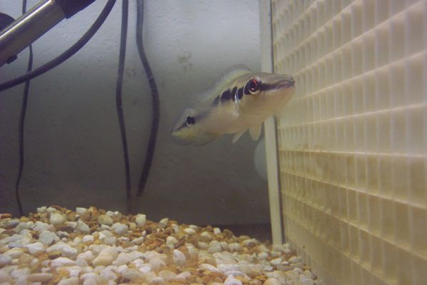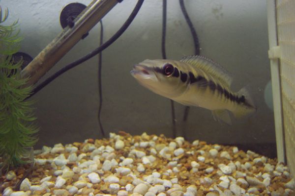 what species of pike he is, is up for debate right now. He was sold as a Crenicichla Sedentaira but there are a few distinguishing features that are missing to make him a Sedentaira. I personally think that he is a Cr. Reticulata, though some people think that he looks simmilar to sp. Belly Crawler.