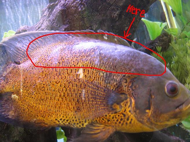 I noticed my oscar has been pretty lethargic recently. He is usually the dominant one of the tank and pushes everybody else around during feeding time. When I went to feed him I noticed he wasn't fighting for food. Infact, he was getting pushed away by his other tank mates. Then taking a closer look he has what appears to be the beginings of a fungus maybe? He also has some nicks and scratches around his body from being pushed around. I moved him into a 29 and added medicating salt. I'll try to post a picture but I don't know how it's going to turn out. Should I get a fungal med for him. All I have right now for fungus is Trisulfa by Mardel. But I heard that causes nitrite or ammonia spikes.