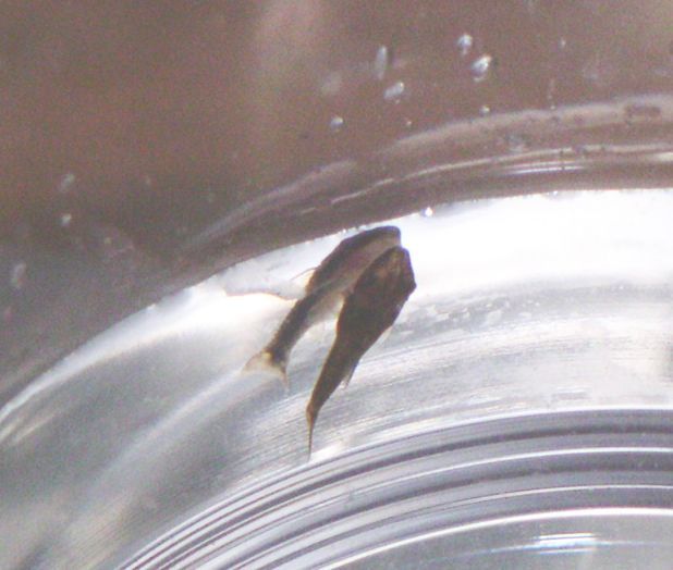 Here are three pictures of the oto fry I have been rearing for 5 weeks. They were laid on 18th August and are being released into the main tank now as they are about 18mm long and should fend for themselves.