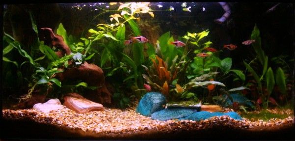 Had the tank running for about a year but have just had a bit of a move around in order to try and grow some moss. As you can see by my mesh attempts. I add C02 but only from a cheap tetra diffuser unit. Carry out 30% water changes every two weeks and give it a vac. Add API leaf zone once a week as per instructions on the bottle. Its is lit for 8 hours a day with a 2 hour gap inbetween by one plant light. cant remember which one! sorry.
