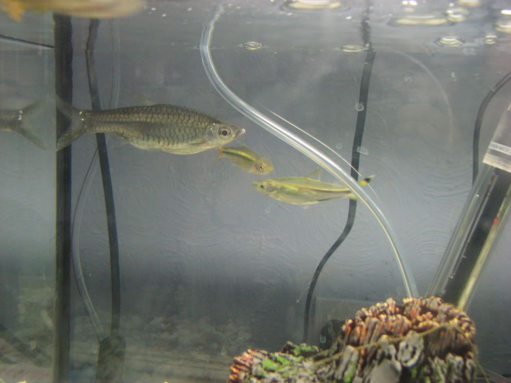 i know in another picture of the big silver one i have my zebra danios i know about the rasbors i just need to know what the silver thing is btw only one of them is a scissor tail the other is a different type of rasbora