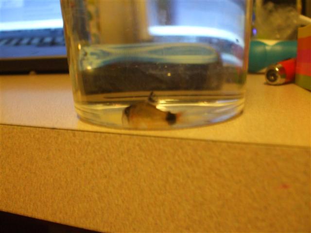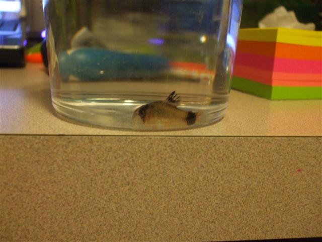 EDIT: After picking up the cup and looking at the underside of the cory, I noticed blood-spots under each of the side fins (ventral?