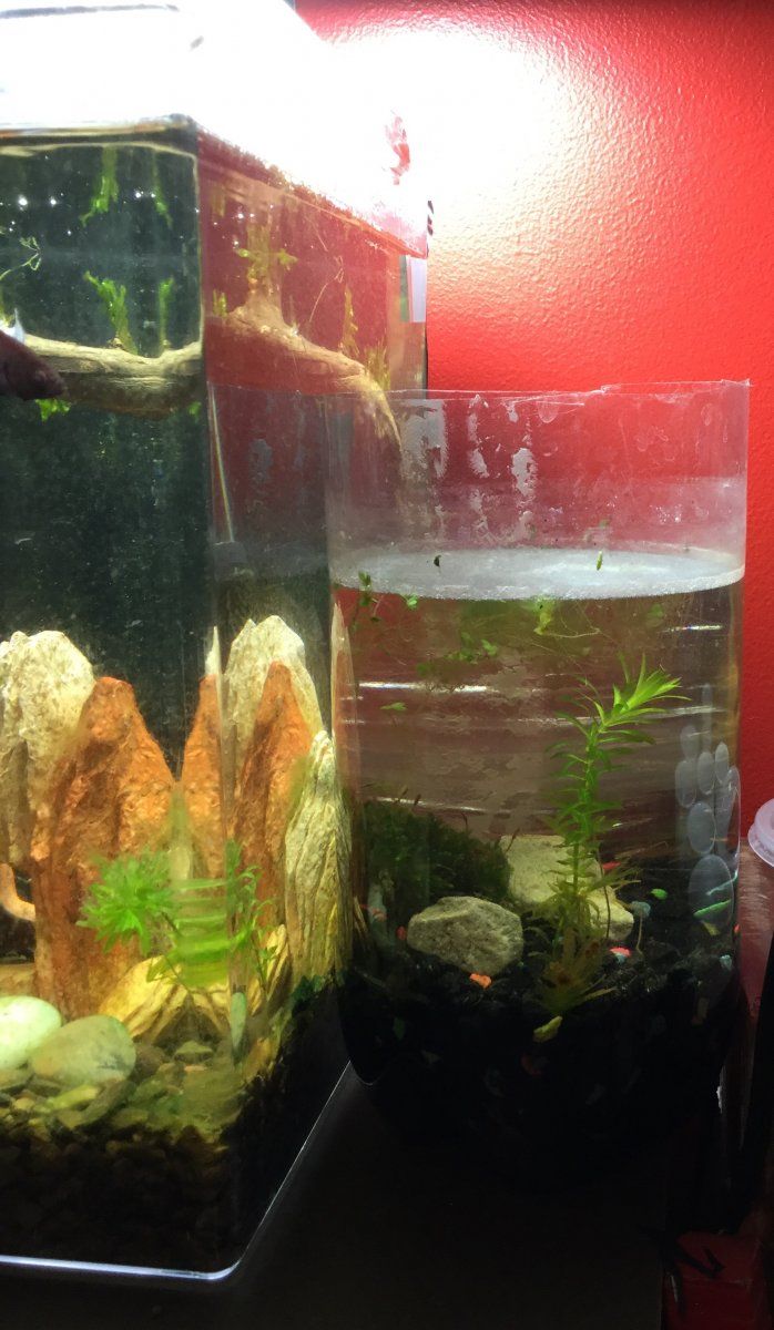 So you guys know that I have a DIY tank with plants/moss right? (Aka 2L bottle), well.....this Anacharis has grown a LOT. I have dirt, capped with gravel in the DIY tank. It has grown so much!