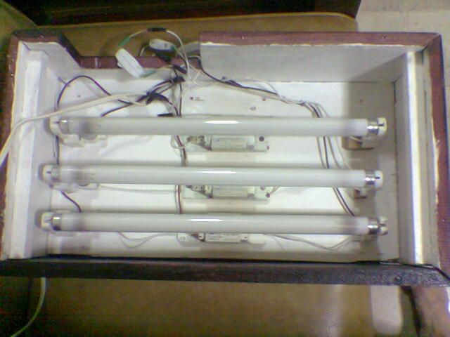 The light set-up makes me a bit nervous. (I'm an electrician, by the way ) I would have a piece of glass, or plexi glass covering the entire light area. There are alot of exposed areas where water vapors could visit.