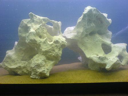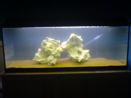 These are some pics i took about 5 mins after setup. This will be a mbuna tank and i am getting about 8 to start in about 2weeks providing i have enough cash and the water stats are ok. I am also getting another rock the same size as the two that are already in there with some small peices. This should be enough rock for while the fish are small and i only have a few i will get some more rock when the fish get a bit bigger.