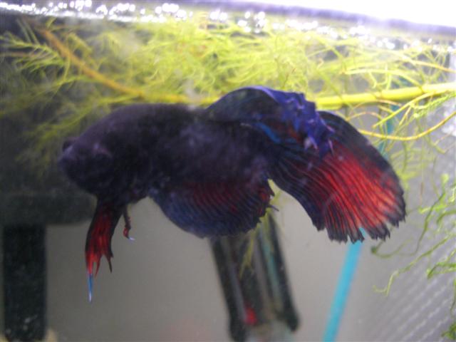 might like to mention, the tears in the last guys fins, he is in a tank with a devider but he was on his own at firts but he kept jumping the devider and catching his tail in the top of the devider, the water level has now been dropped so he cant do this