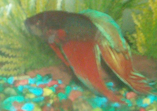 Is that bowl big enough for him to be happy in? I was thinking the strong current in the 10 gallon was making him stressed and causing his fins to turn black or maybe it was the filter intake tube?