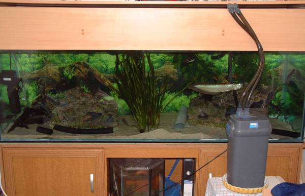 Heres a Pic of my 6 x 2 x 2 tank, sorry about the mess but decorating, anyway the fluval is only running to start off some media for my 8 x 2 x 2 tank which is cycling.