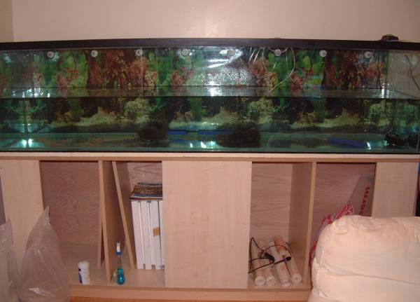 The tank itself cost £550 and is made from 12mm glass. The stand never cost anything well apart from a tin of sweets as my dad was able to get it all from work as damaged pieces so we were able to cut the good bits out for what we needed.