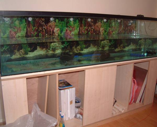 heres pic 1 of my 8 x 2 x 2 tank, just being filled with water, doing it over few days to let tank settle, still need to put doors on tank so work in progress.