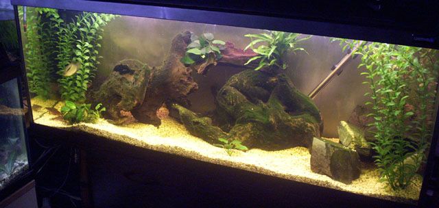 Re-done the 57G recently, got a new piece of bogwood today from work that has plants already growing on it - think it fits in really nicely, might have to get some more!