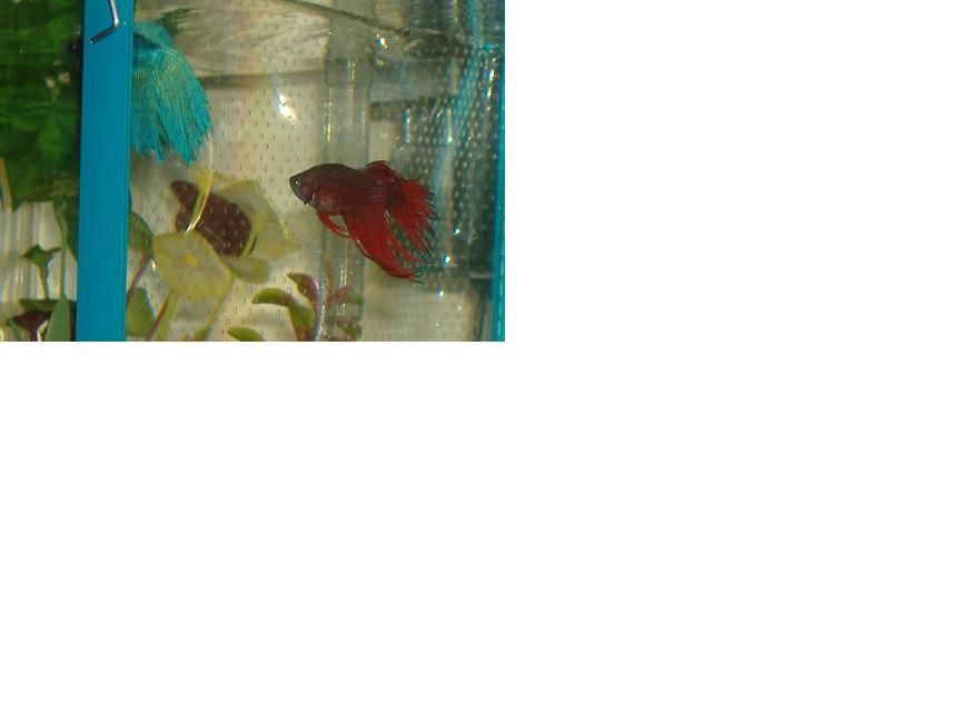the red fishy is way more photogenic lol but aths cause he is mean, and will attack your finger if you put it in his tank he is flaring at me now ............... I am across the room