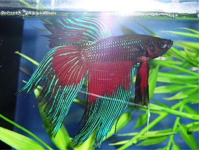 Here is a picture of Draco, my Walmart Betta fish. I know Walmart should also be called Deathmart for fishies but all he has is a case of fin rot which is clearing up day by day. I think he is a veiltail/crowntail cross.