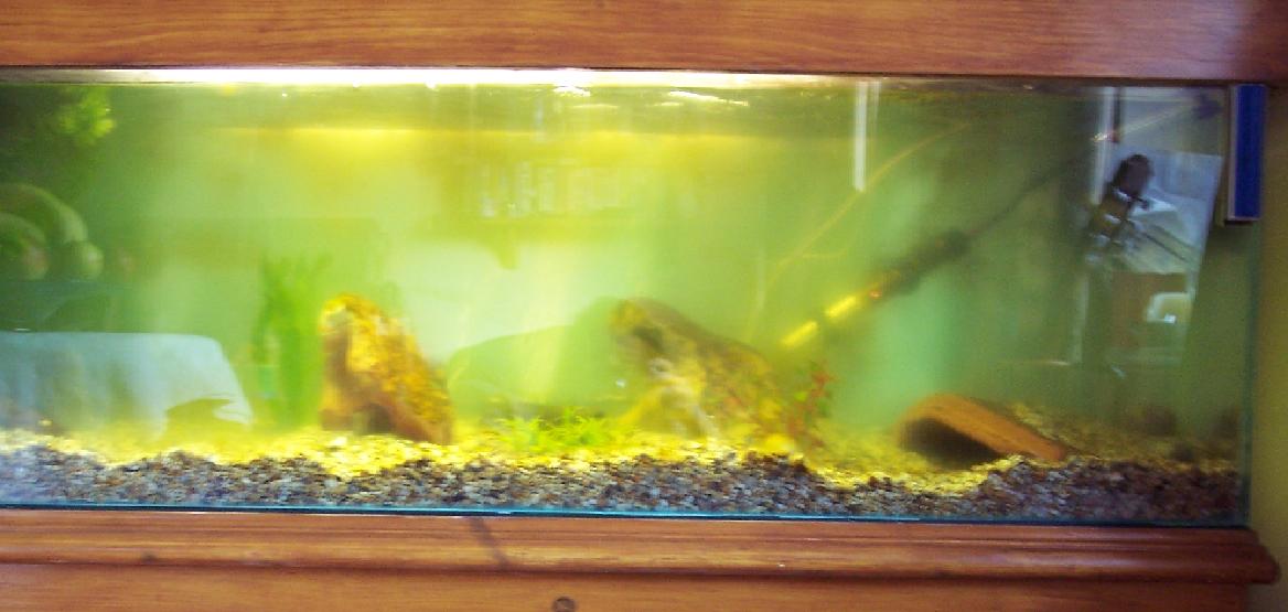 Yum, green water. I got hit with that one too. I got rid of it by having the light on only a few hours a day for a week or so. Of course it just recently came back, but that's because I stirred up all the gravel a lot redoing the tank (I'm guessing). I have more plants in there this time so hopefully it will be gone soon.
