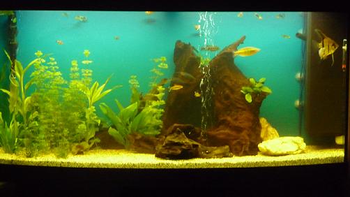 Just thought i would post a picture of my finished tank. Its a Juwel Vision 260 with 2 Angels, 2 Dennison Barba, 2 Rainbow fish, 1 giant flying fox amongst a few other inhabitants.