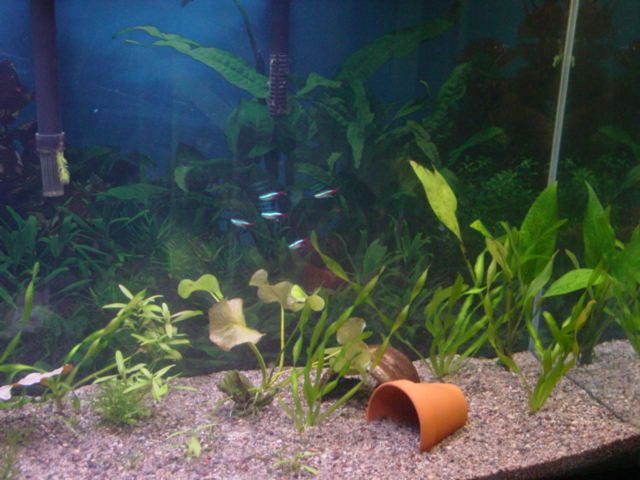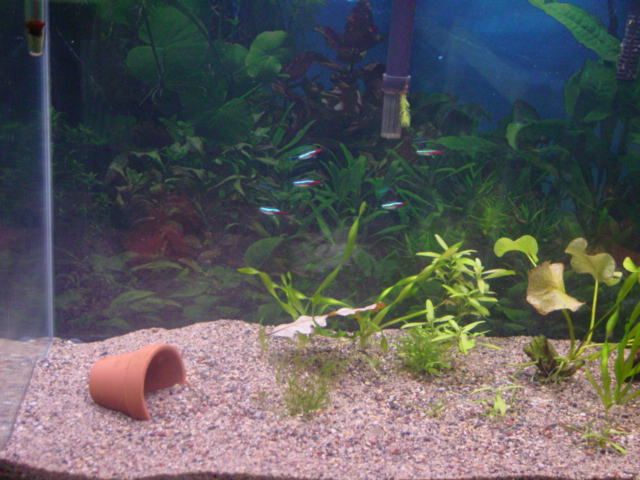 A closer-up picture of some of the plants (and the little school of Neons!):