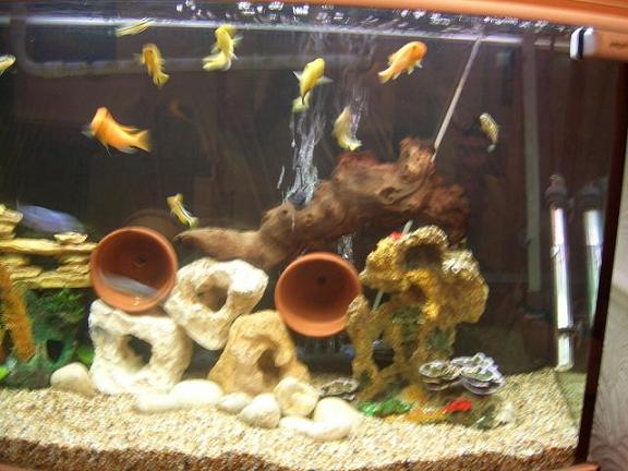 i would like to upgrade to a bigger tank or rehome some.theres no aggression as yet but understand there will be.all the ornaments are hollow and the fish have the own places marked out.If i just stacked slate along the back would this be sufficient?how would i go re tank cleaning would i have to break the pile down each time?and yes i probably should of done my homework better but its better than lettin this guy flush em down the loo.