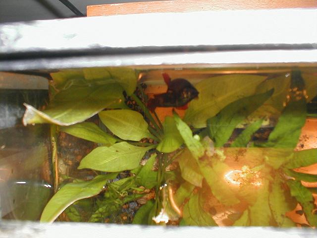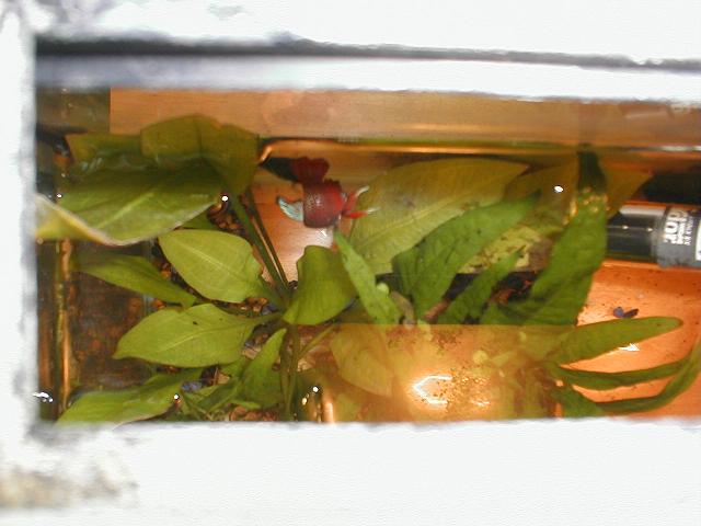 There aren't a ton of eggs, but I am happy with a small spawn as I want to spawn the girl to a different male in a month or so. Here's a pic of the nest. The father has been expanding it nicely since I took the female out.