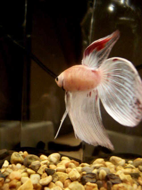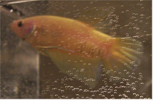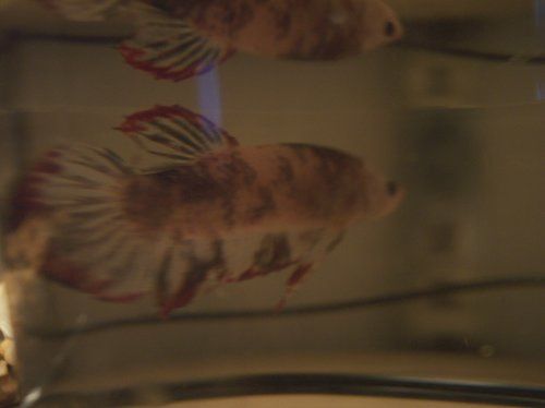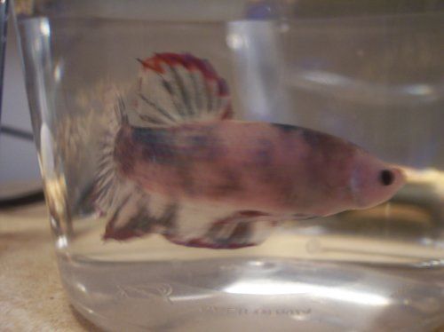 Hi! I went to the fish store today and brought home three bettas that I am almost 100% positive are plakats. The guy at the store said they are normal veiltails that got beat up at some point, but I feel differently. Anyway, I wanted to put up a few pictures to see what you guys think. The tanks are new, and one in still in a cup, so excuse the bubbles and such. Also the pictures are bad, I am so excited I just wanted to hurry.