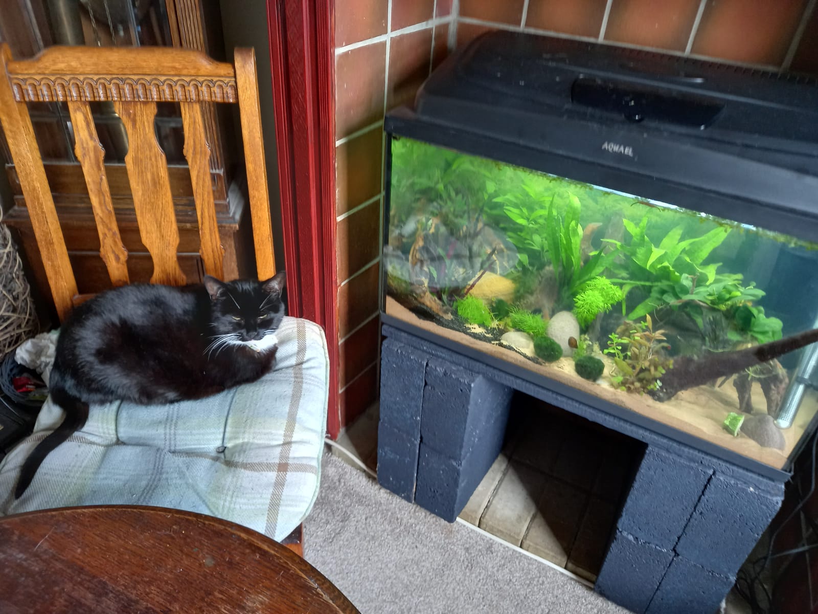Welcome back dudeIt's seen better days! Nerite eggs and MTS everywhere. Some floating red plant I haven't been bothered to plant.. red cherry shrimps have seemed to make a reappearance though. I don't think the kribs are interested in them anymore
