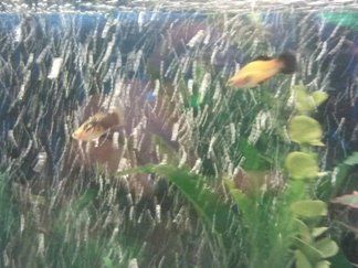 so i picked up these two platy about 6 months ago, from the same tank. Ickus is the white/yellow/dalm black and Murdock is yellow black fins.. i'm not sure if they're litter mates or not but these two are always together. the weird thing is that Murdock is constantly mimmicking Ickus. Ickus does breed with the females, Murdock won't and he seems to get irritated when ickus does.. strange. has anyone else had this happen? what could this be?