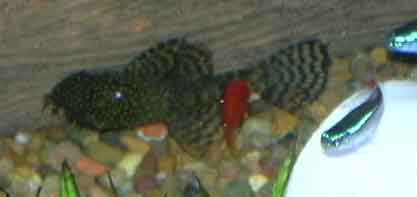 This is my "barely" 1 inch long platy fry attacking the male bnose catfish (Dysons) fins.....it cearly doesn't value its life.....after being chased off it keeps coming back for more....