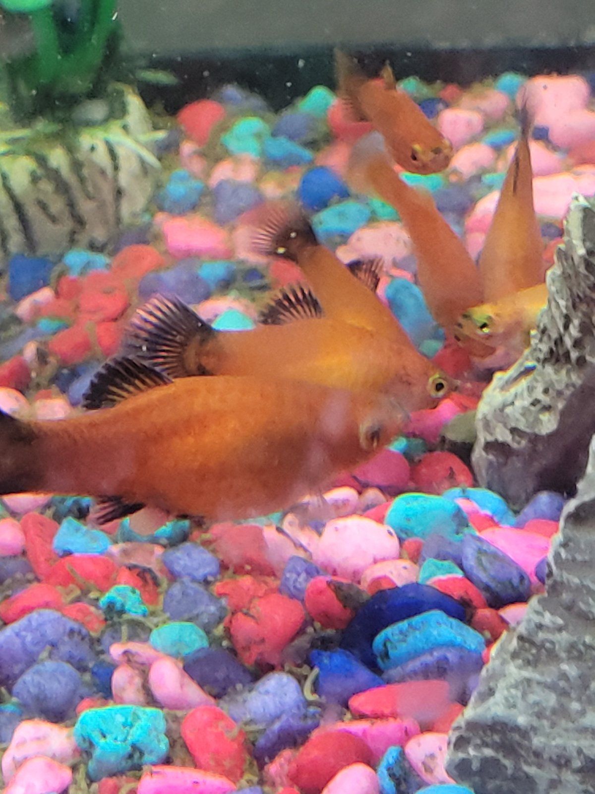 I noticed that a few days ago, our big female platy has a white ball hanging from underneath