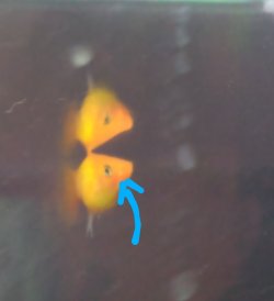 The thing is that apparently yesterday she’d given birth with me completely unaware of the fact that she was even a female. (I now know the distinction) However, after noticing the new bump on her chin, I went and did about a 50% water change and supplemented the new dechlorinated water with 3 tablespoons of aquarium salt, thinking it would be a good start of treatment for whatever this mystery diagnosis could be. I didn’t figure out her recent parturition until I had seen two little eyes swimming around the tank. And no, they aren’t fish lice, they look like how fry should from what I could find. Pretty sure I must’ve accidentally vacuumed up the rest when doing a water change, so now there’s only two remaining from what I can count. Though I wouldn’t be surprised if she ends up eating them both, I’m not well equipped to try and save them, and I definitely don’t have the time and money to set up a quarantine tank right now.