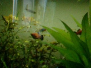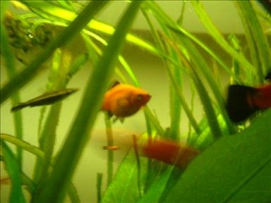 Today I got a new male platy, Socrates, in hopes that he will breed with my two females. B) So here he is: