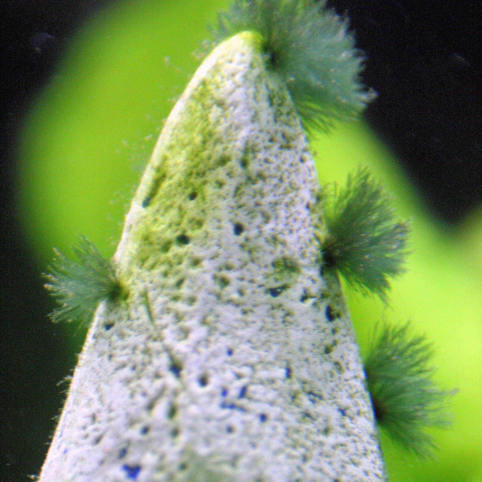 The algae is a form of black brush. Like all problem algae, it is caused by an imbalance of light/nutrients. Filtration has nothing to do with it, in fact I have always seen this on the filter intake/return spray bar where the flow is the strongest. I assume this is because the water flow is bringing more nutrients, but the point is that filtration is not behind this.