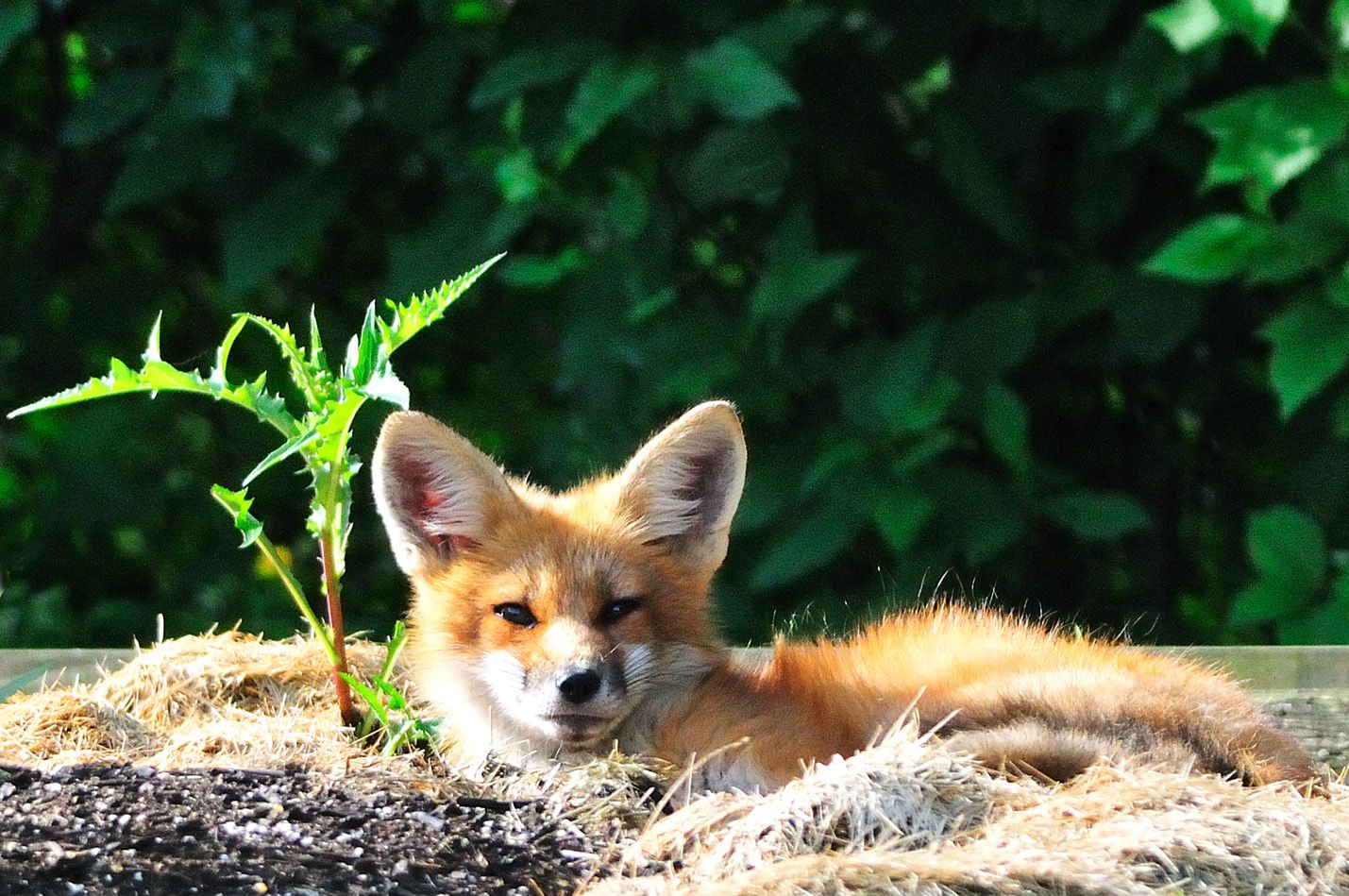 What a beautiful little Fox! Colors are pleasing and the green plant draws your eyes on the Fox. I love this pictureEvery day for a week at the same time she would lay in the sun in the backyard vegetable garden taking a break from the kits I assume.View attachment 167706