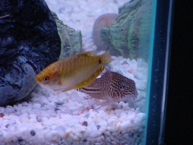 OP OP CatLover Fish Addict Joined Mar 30, 2004 Messages 703 Reaction score 1 Location Eastern Kentucky Apr 24, 2004 #16 Here is one of my gold gouramis hanging out with Sedona, the leopard cory. Attachments ggourlcory.jpg 41.7 KB · Views: 49