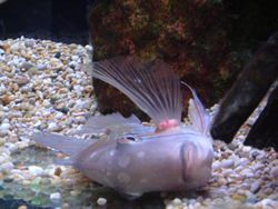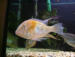 My cichlid has been unwell for some weeks now. We thought he was going the right way as he has been eating and toileting ok, and his colur was high. He had gradually lost his bouyancy over a period of weeks, and developed a cyst now cysts on one of his pectoral fins. He spent a few weeks mainly on the bottom of the tank upright only swimming for food and to attack the silver sharks and other cichlid. Then yesterday he suddenly lost the ability to be upright and is laying on the bottom of the tank on his side. We were told to putting him to sleep by the fish shop but we want to ask first if any one can help as we want to save him if we can. We have done everything advise, and the nitartes in the tank have reduced, we have added vitamins, we have put Melafix x 2 lots of 7 days in the tank, but he has got progressively worse in terms of his position in the tank. We tried to move him onto the tank bottom yestreday as he fell on the gravel and it scratches him. He has preferred a clear piece of tank bottom over the past weeks since he has been on the bottom. I know many may think to let him go but he still wants to eat and when we tried to move him yesterday he did swim but as soon as he stopped fell to the bottom where he tried to keep upright but again fell to one side. PLEASE IF ANYONE HAS ANY IDEAS, he has been unwell since the end of November but he has eaten up until tuesday. We just want to save him if we can as he is our baby.