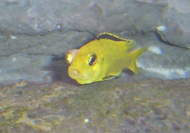 Fish Symptoms (include full description including lesion, color, location, fish behavior): The fish has eye bulging with white scaby looking around it also torn tail fin, Its also hide most of the time but comes out to eat.