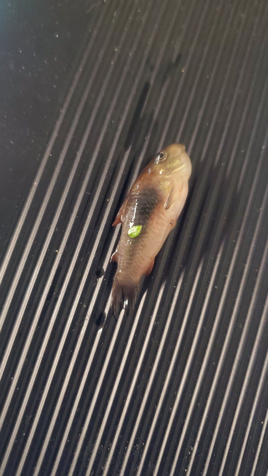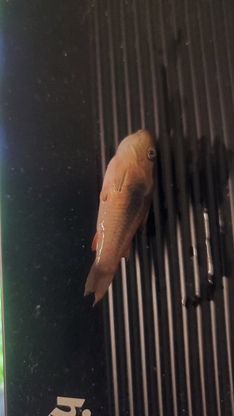 Water parameters were checked the morning after I found him: ammonia and nitrites at zero, nitrates at 20, water temp around 76°F, and pH stable around 7, which is where this and my other tanks always are at.