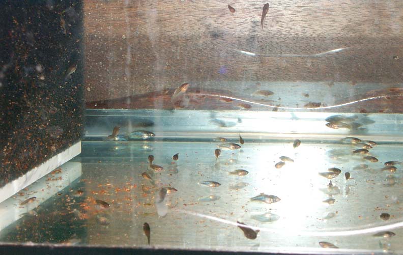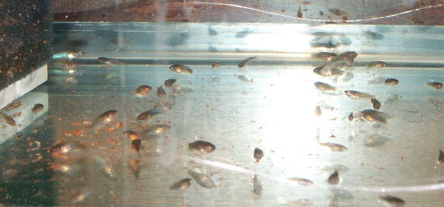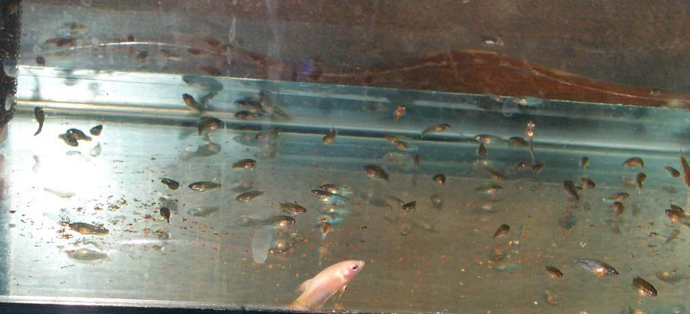 All kind of color I can tell this batch. Green, steel, blue. So far can't tell any butterfly yet. The second batch babies with the royal blue doubletail female are coming alone good too. I will show you next time.