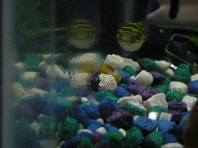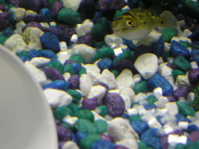 Hi everyone i'm new here so this is going to be my first pic that i am going to try and post. Wish me luck lol. anyways this is a pic of Pudgy my figure8 puffer he is only about an inch and a half 1 1/2" right now but he is great. he is very active. its fun to sit back and watch him play in the bubbles.