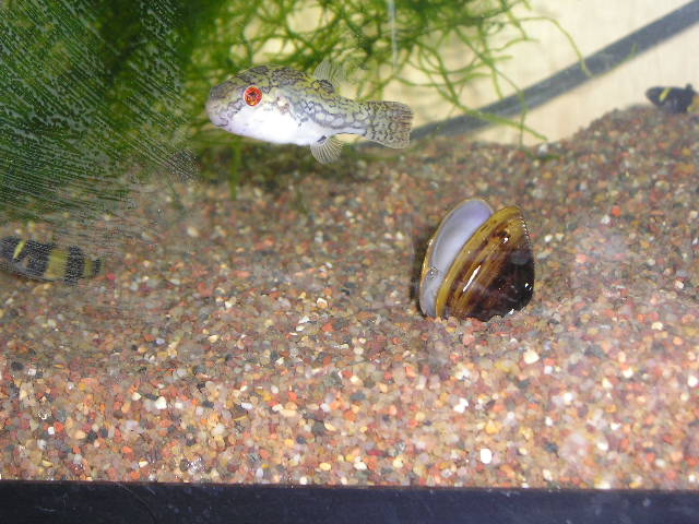 She's also a pure FW puffer - shouldn't really be kept in a brackish tank.