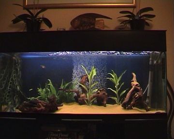 The tank is 48x12x18 and the plants are java fern and another one which I forget. I got the plants when it was freshwater so I dont know how long they will last although I am told that java fern will tolerate salty water.