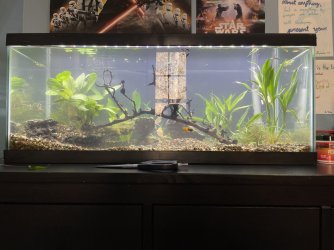 The water is cloudy in that picture because I had just rescaped the tank and there was dust from new rocks. Its clear now.