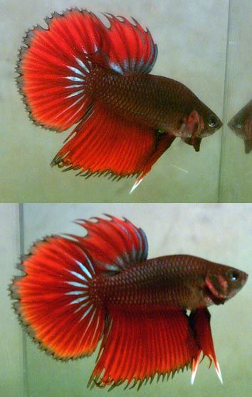 Mayo (my opaque betta in my avatar) has these little tiny zizag at the tip his tail. The 'zizags' are really tiny so i cant take a picture of it for you guys since my digi camera isn't that powerful. Could the zizag been part of a ct that Mayo might've come from?